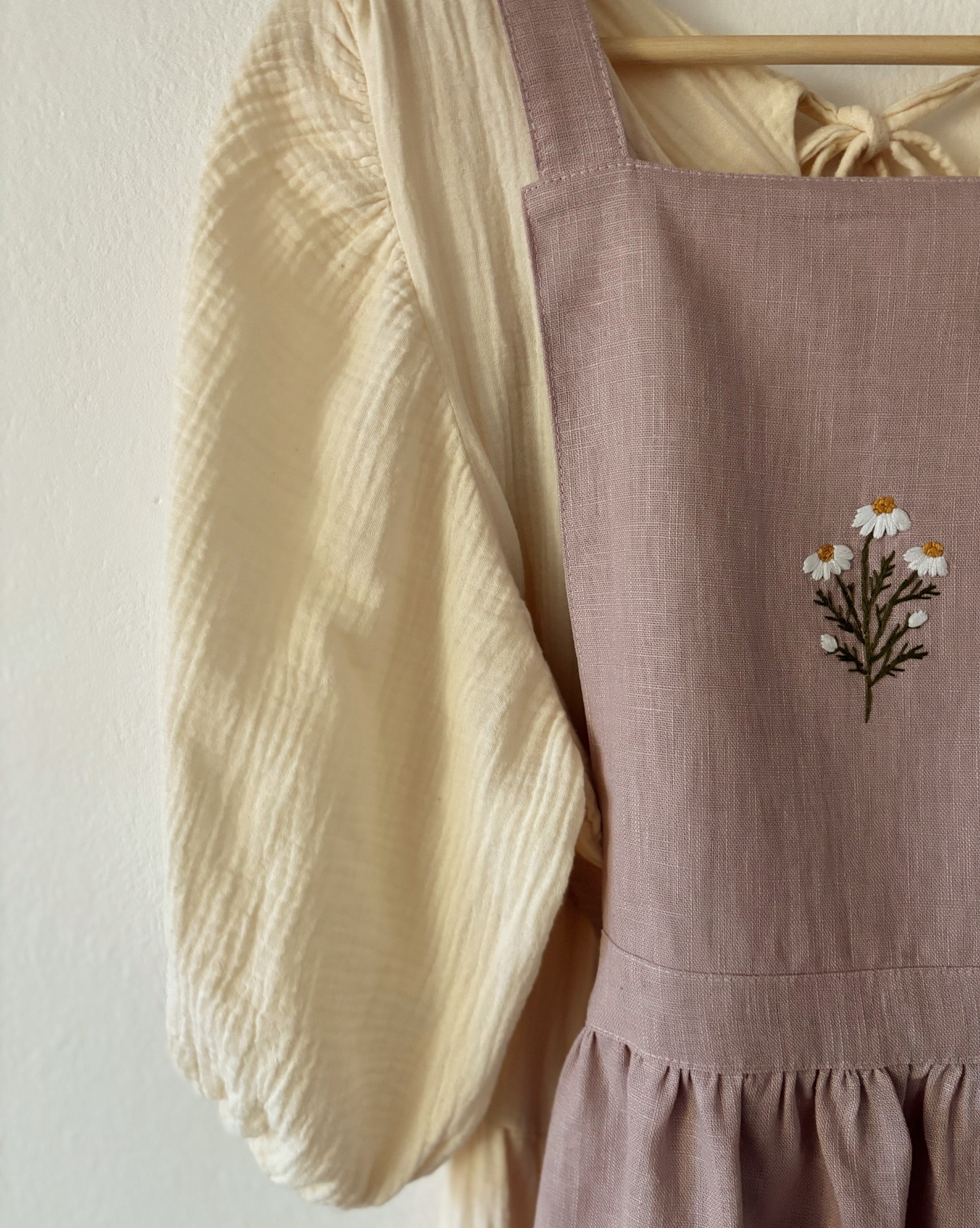 Lněná šatová zástěra - Starorůžová - Heřmánek