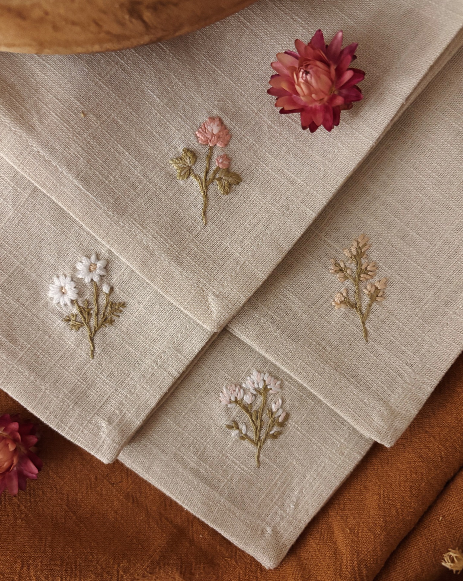 Toto lněné prostírání jsem ručně vyšívala s myšlenkou na klid a krásu, které do našeho domova přináší příroda. Věřím, že vám bude dělat radost po celý rok a stane se tichým společníkem každodenních i slavnostních chvil u stolu.