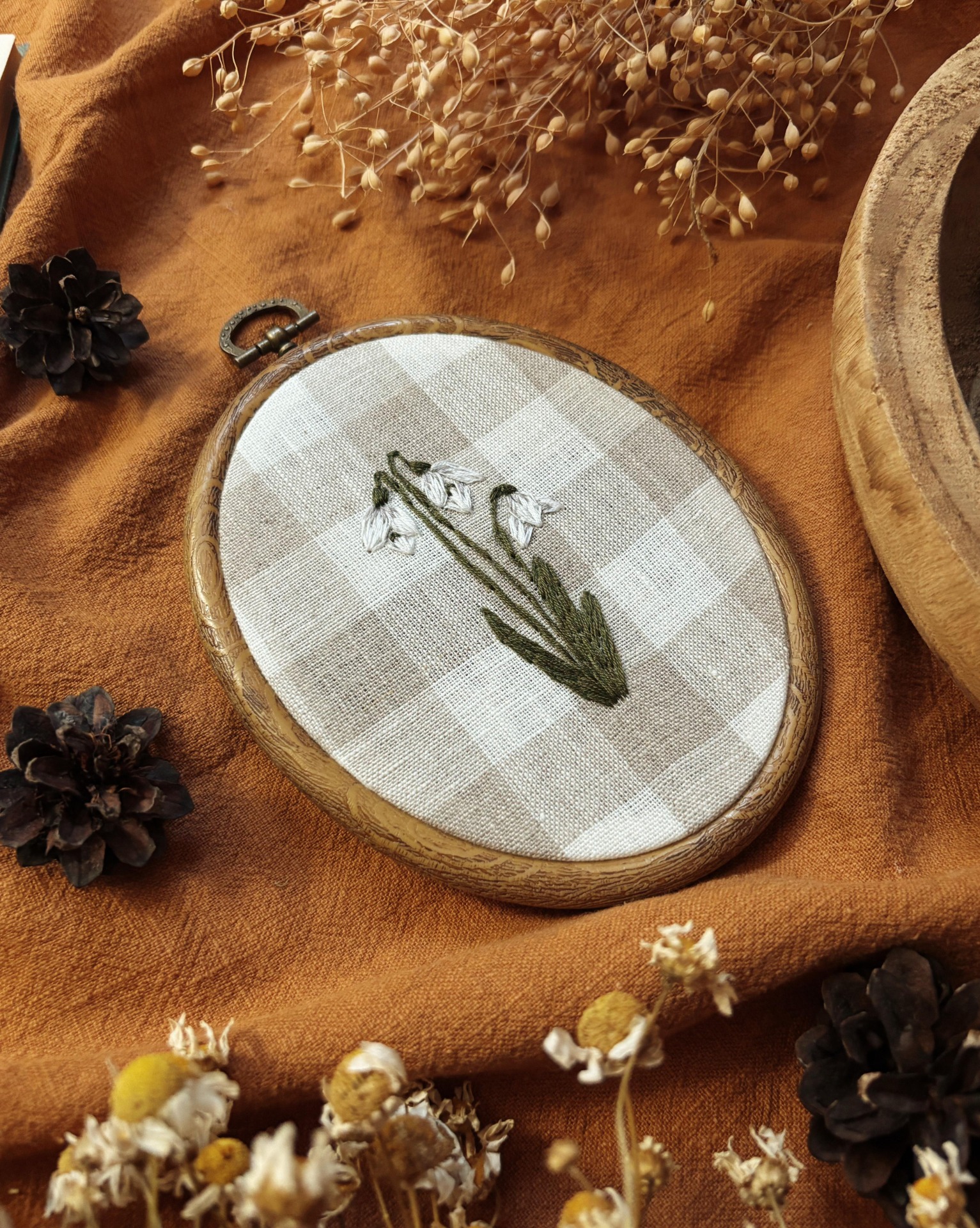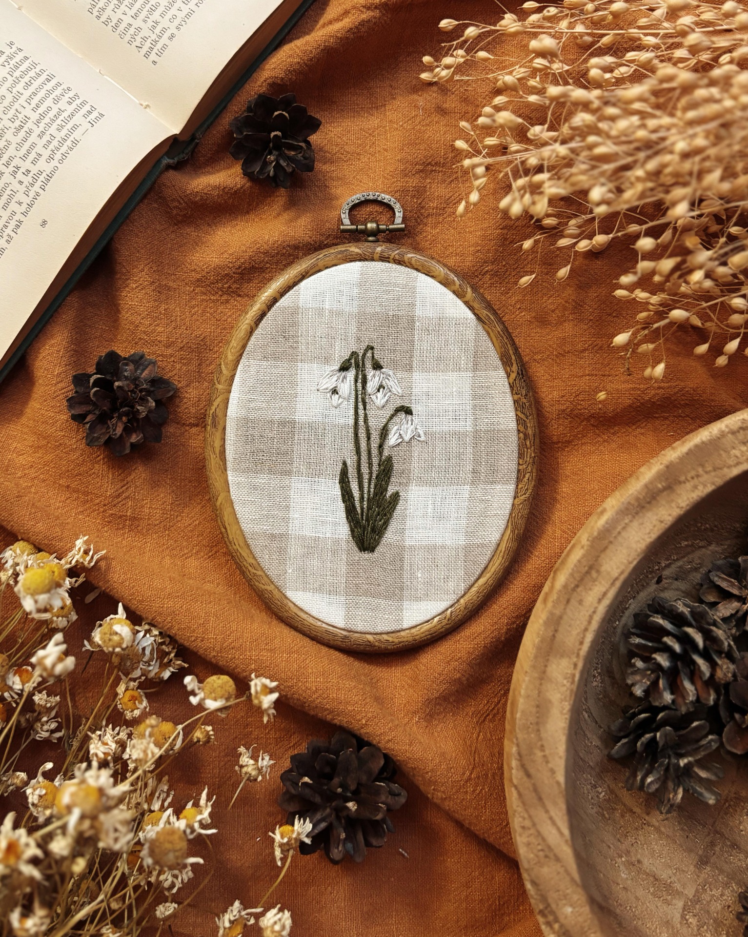 Tuto vyšívanou ozdobu jsem ručně vytvářela s myšlenkou na klid a krásu, které nám do domova přináší příroda. Věřím, že vám bude dělat radost po celý rok a stane se výjimečným prvkem vašeho interiéru.